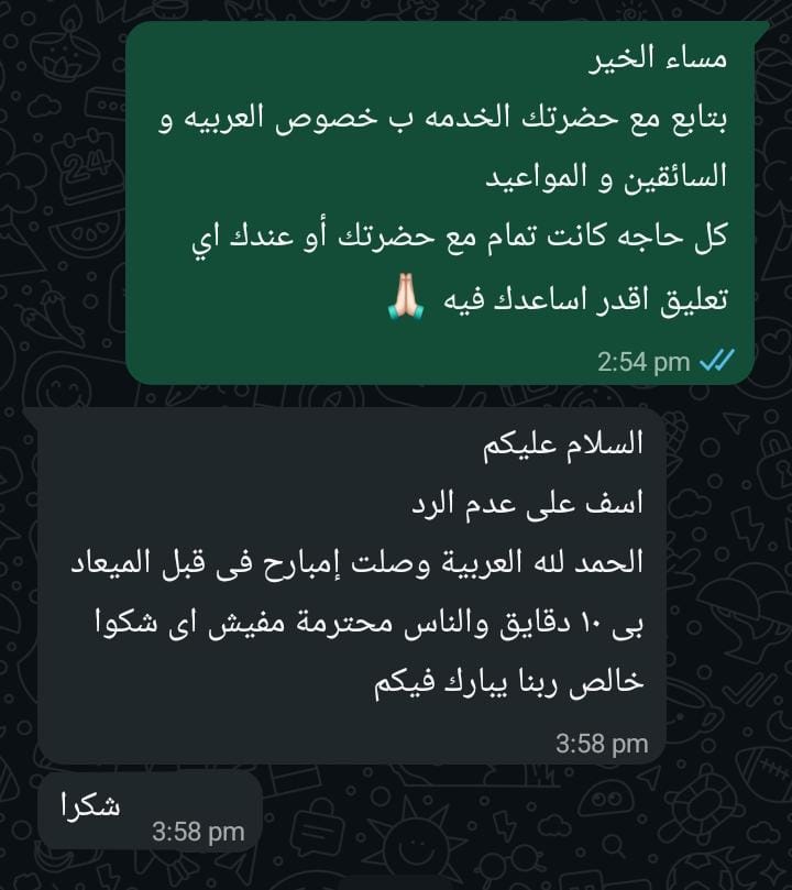 العميل بيكون على دراية بالمدة اللى هنوصله فيها وبنفضل على تواصل معاه زيادة فى الإطمئنان